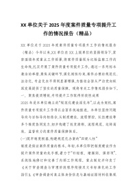 XX单位关于2025年度案件质量专项提升工作的情况报告(精品)