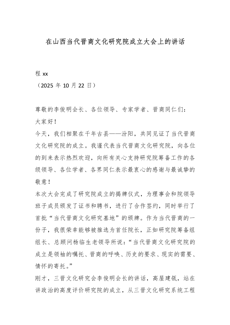 在山西当代晋商文化研究院成立大会上的讲话_副本