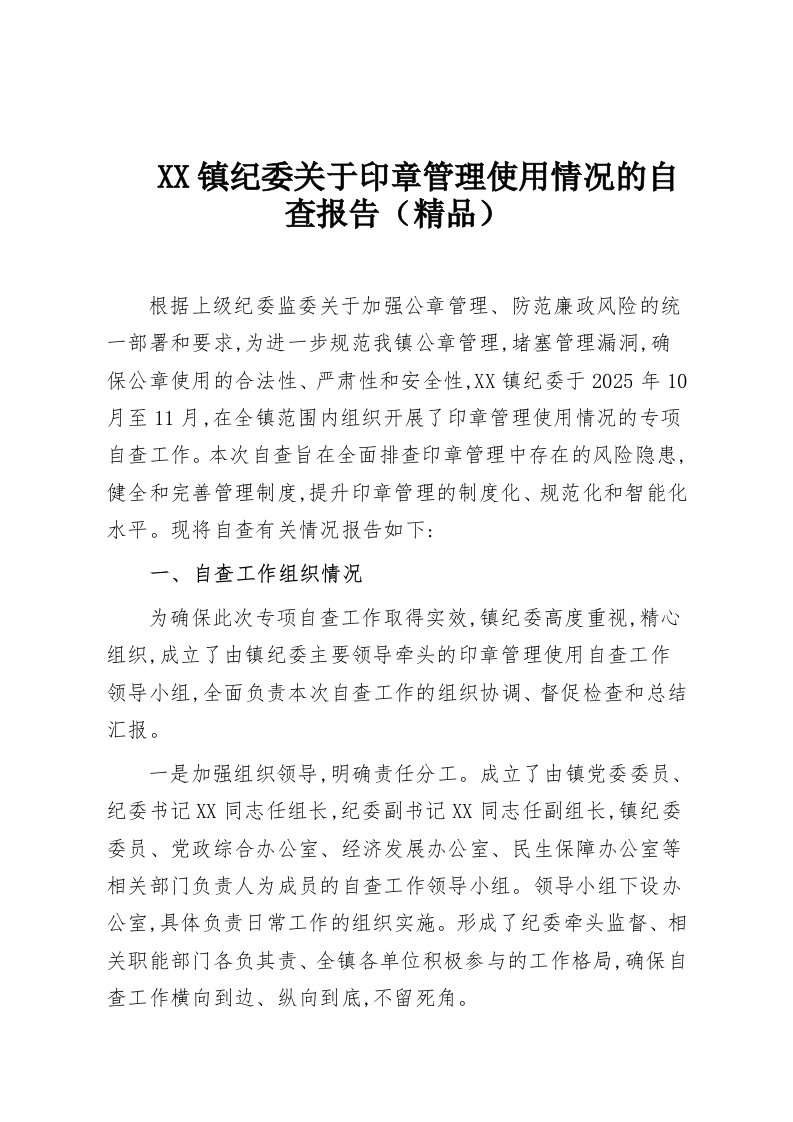XX镇纪委关于印章管理使用情况的自查报告(精品)