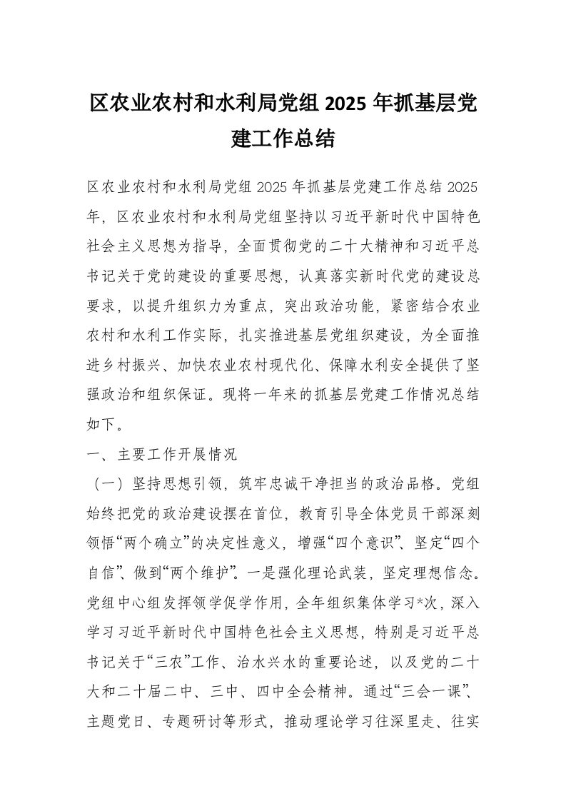 区农业农村和水利局党组2025年抓基层党建工作总结