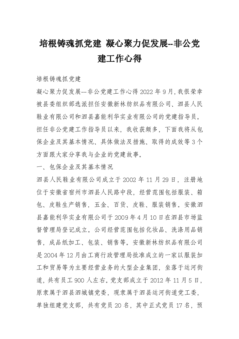 首页材料汇编培根铸魂抓党建 凝心聚力促发展--非公党建工作心得