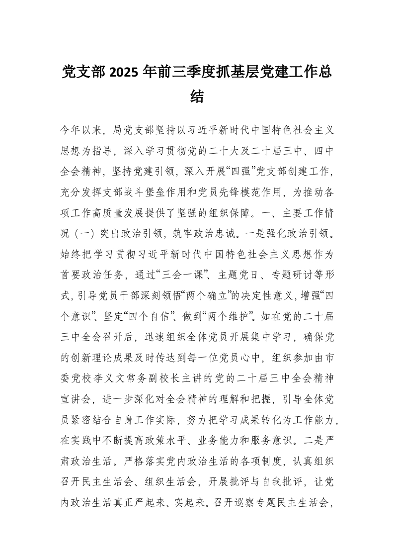 首页材料汇编党支部2025年前三季度抓基层党建工作总结
