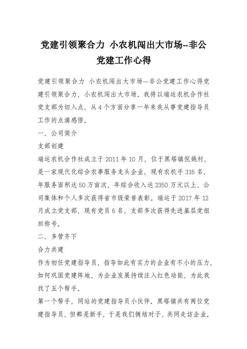 首页材料汇编党建引领聚合力 小农机闯出大市场--非公党建工作心得