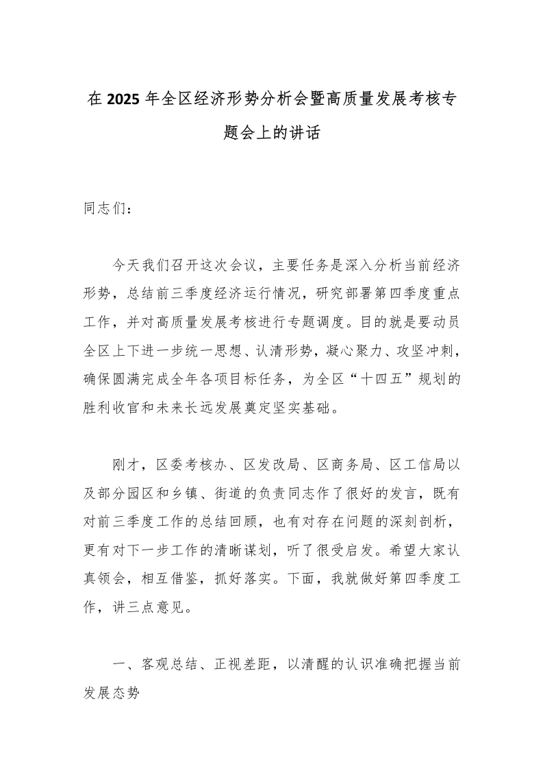 在2025年全区经济形势分析会暨高质量发展考核专题会上的讲话_副本