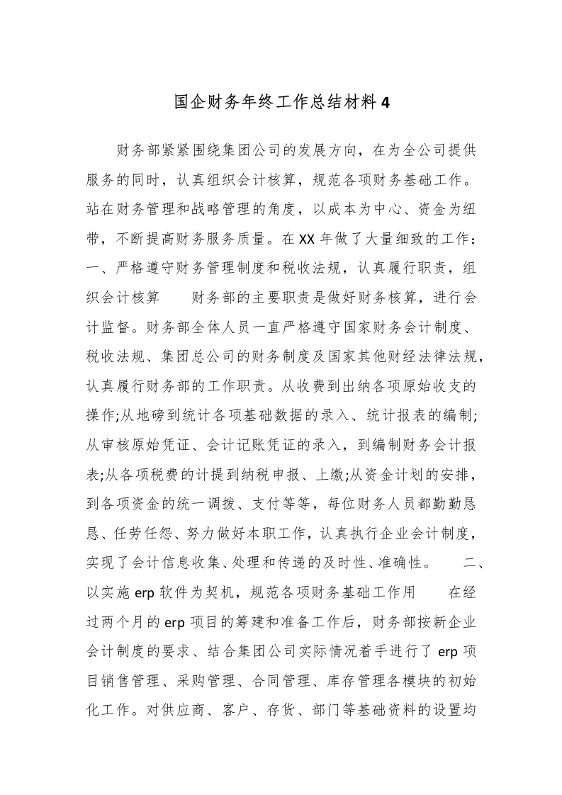 首页工作文档国企财务年终工作总结材料4_副本