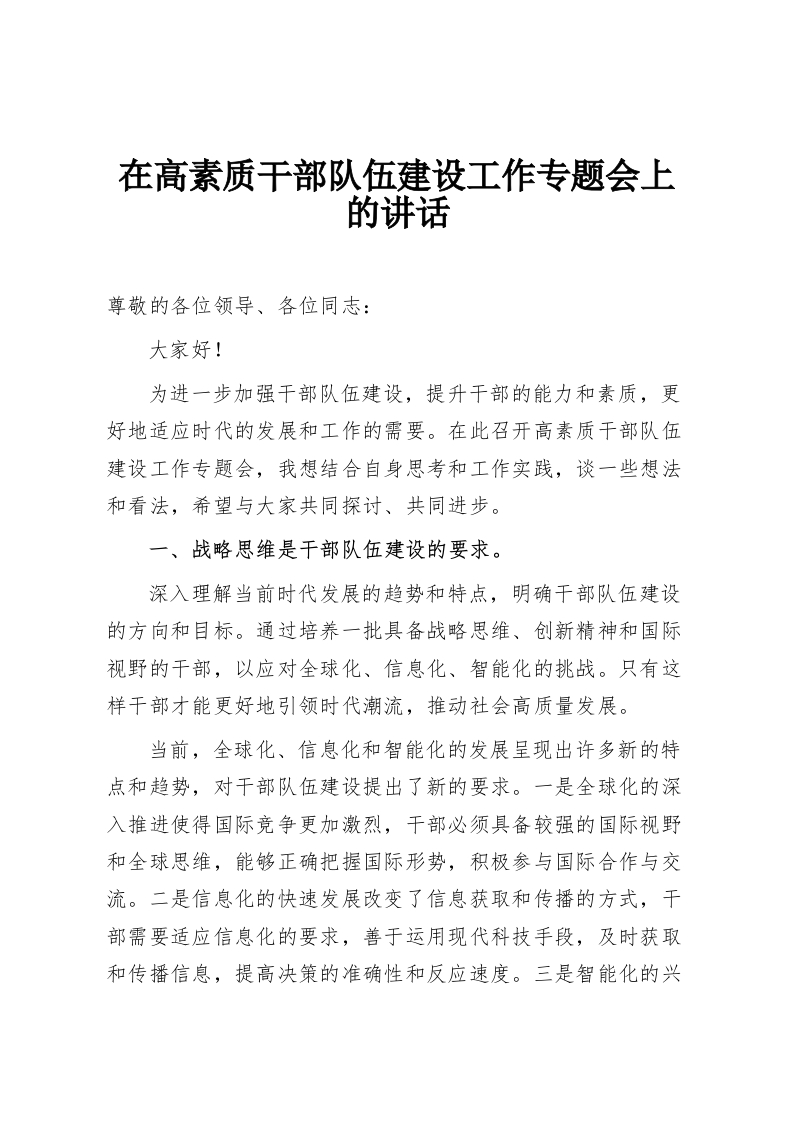 首页工作文档在高素质干部队伍建设工作专题会上的讲话