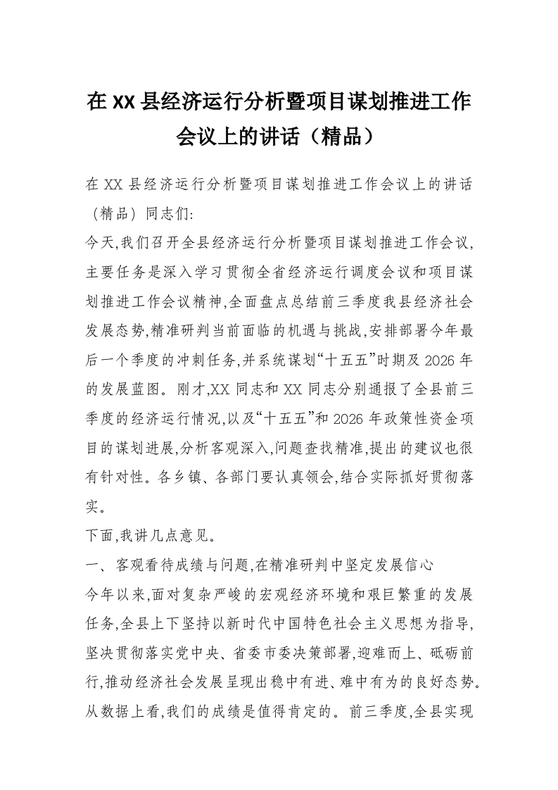 在XX县经济运行分析暨项目谋划推进工作会议上的讲话(精品)