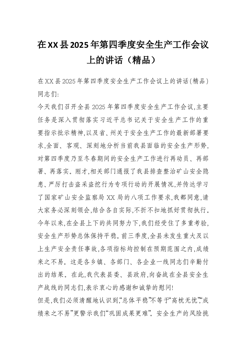 在XX县2025年第四季度安全生产工作会议上的讲话(精品)