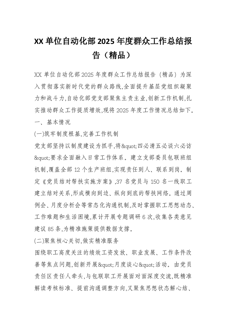 XX单位自动化部2025年度群众工作总结报告(精品)