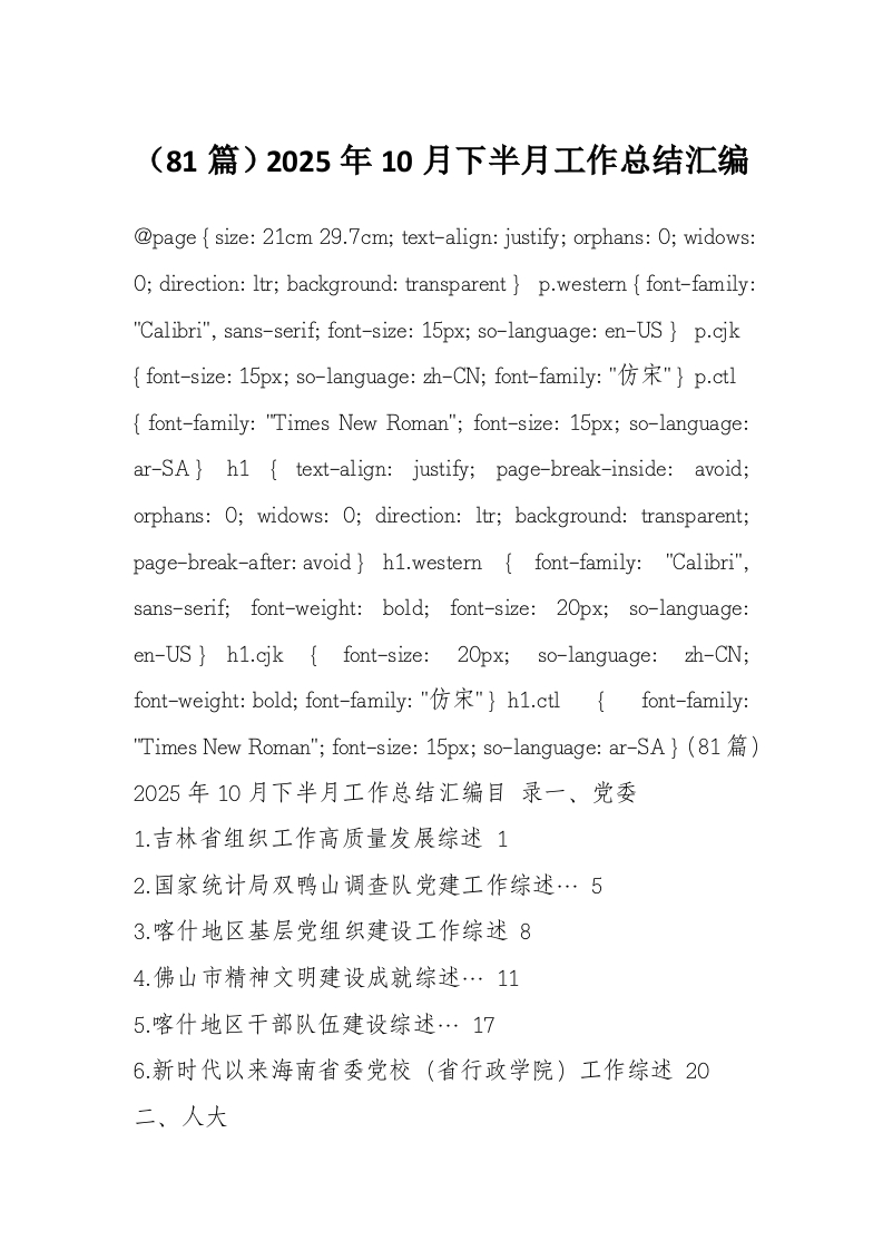 (81篇)2025年10月下半月工作总结汇编