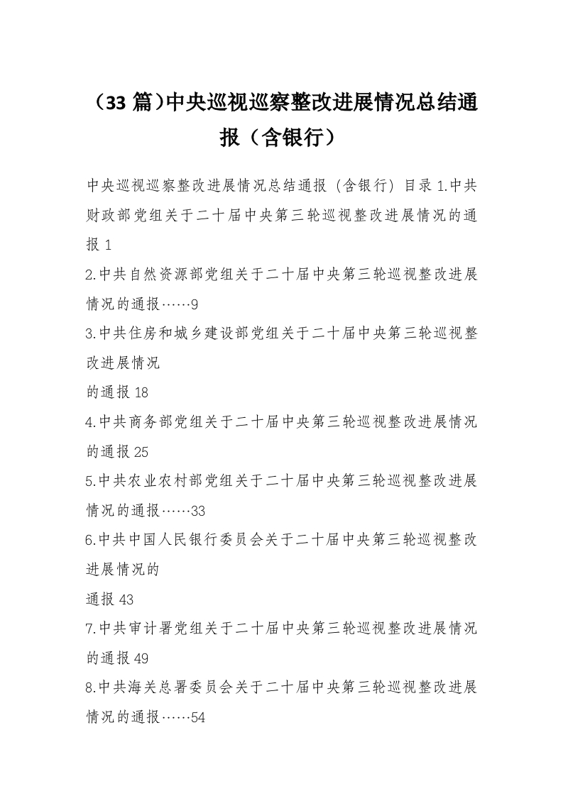 (33篇)中央巡视巡察整改进展情况总结通报(含银行)