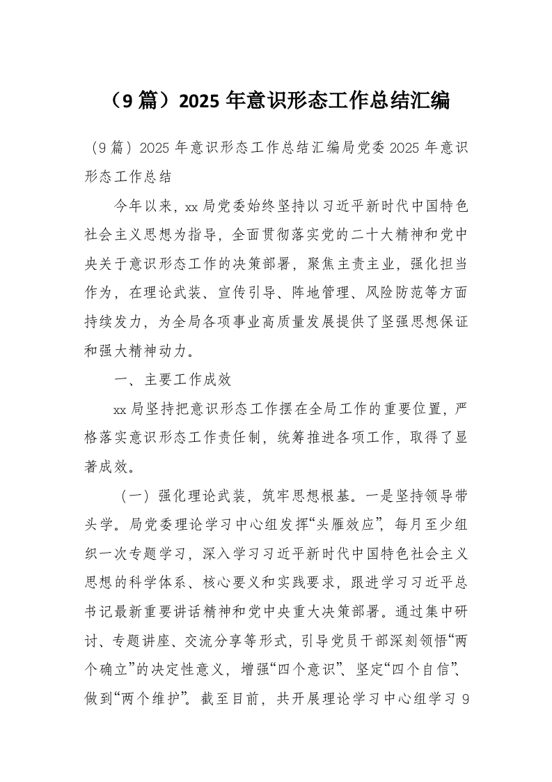 (9篇)2025年意识形态工作总结汇编